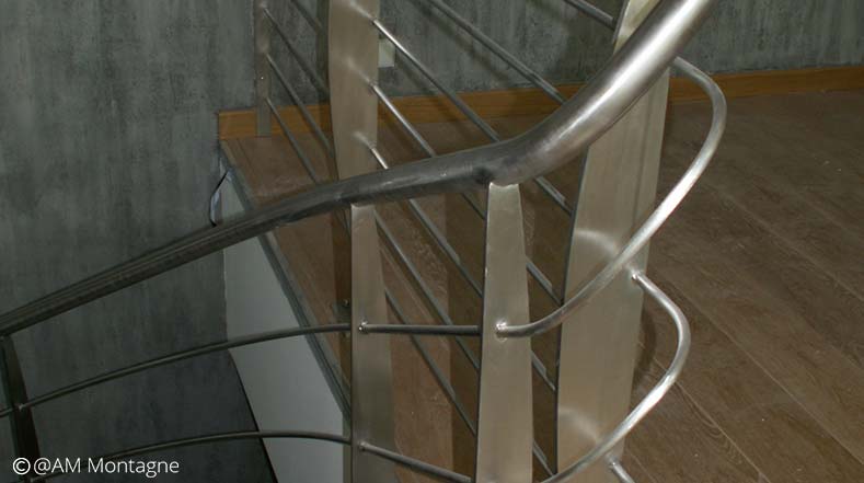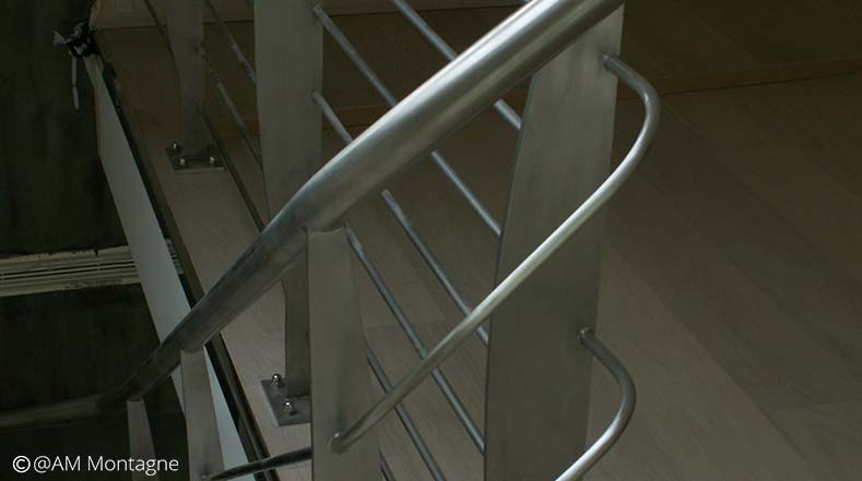 Nous pouvons aussi réaliser vos mains courantes droites ou débillardés, acier laqué ou Inox, pour vos escaliers.